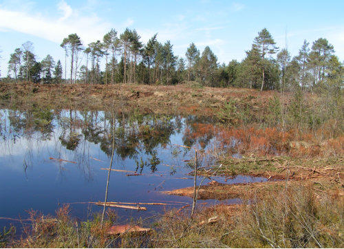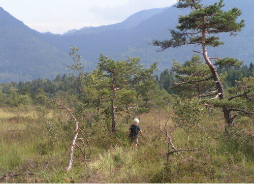 Entbuschung in der SterntalerfilzeDie Jugengruppe entfernte im Sommer 2009 einen großen Teil des Aufwuchses und verhindert damit das Austrocknen des Moores. Eine Birke benötigt im Sommer mehrere hundert Liter Wasser am Tag