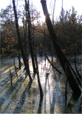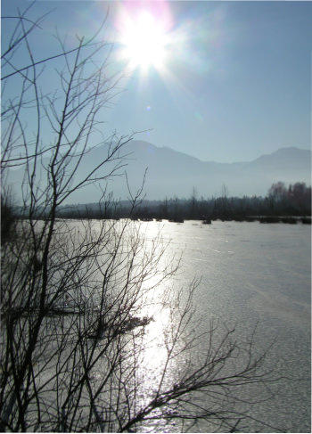 Der SpiegelseeVerlandeter Rest des Rosenheimer Sees. Durch die Renaturierungsmaßnahmen öffnete sich jetzt die Schwimmdecke. Um 1960 wurde hier noch gebadet.