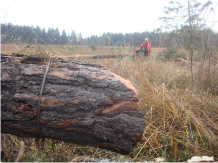 Holzernte auf Moorflächen mögich.Hier ist die Rückegasse im Hintergrund nach über